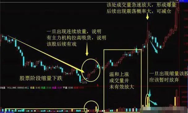 成交量急速放大,成前期平均成交量或者昨日成交量2.5倍以上,后续出现震荡概率比较大,可减仓或者出局.爆量以后要震荡: